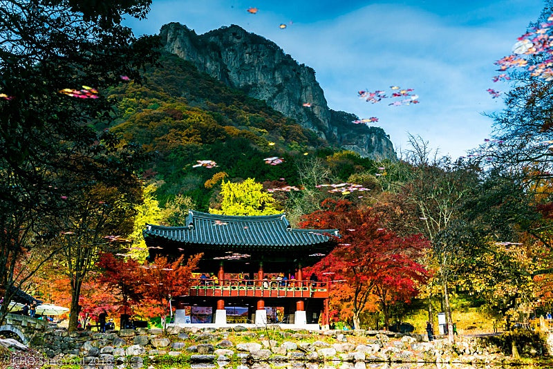 ▲보문정의 정자를 반영만 광각으로 찍은 후 180도 회전시킨 사진 주위에서 이쁜 단풍들을 모아 적절하게 뿌려 연출한 사진입니다