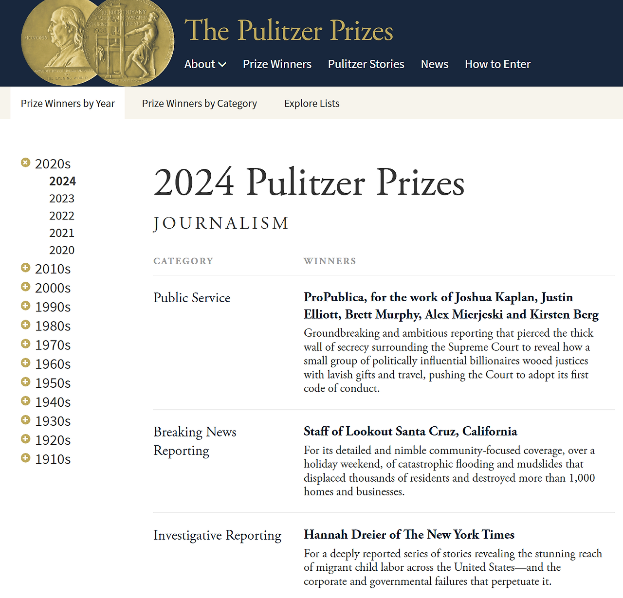 1. 보도사진 - 로이터통신 (Reuters), . 퓰리처상 (Pulitzer Prize) 사이트