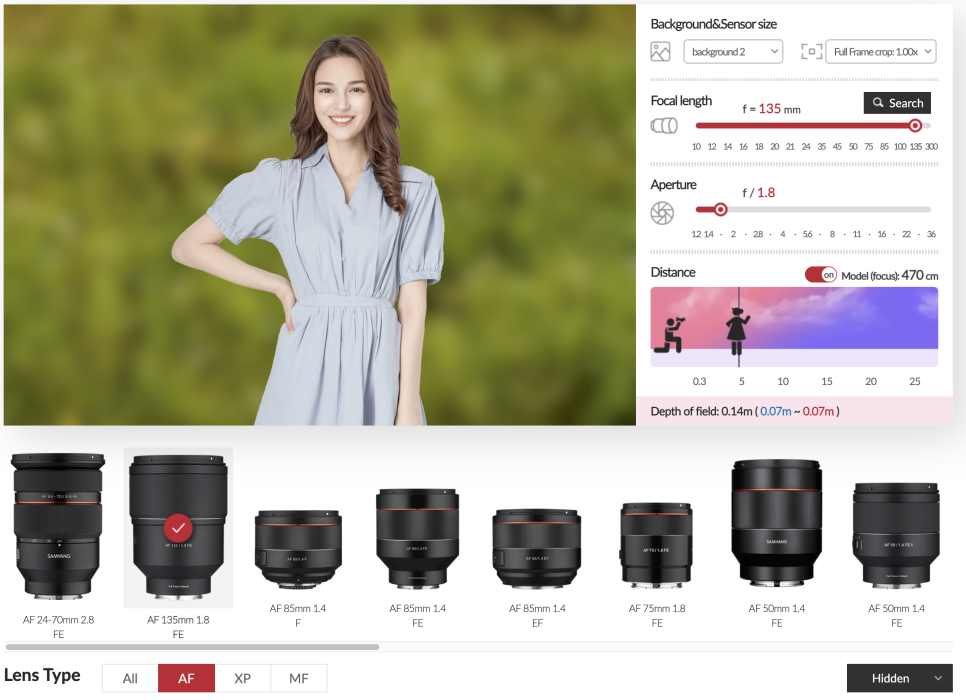 이 카메라 시뮬레이터는 삼양에서 만든 렌즈를 미리 테스트해 볼 수 있는 사이트에요.