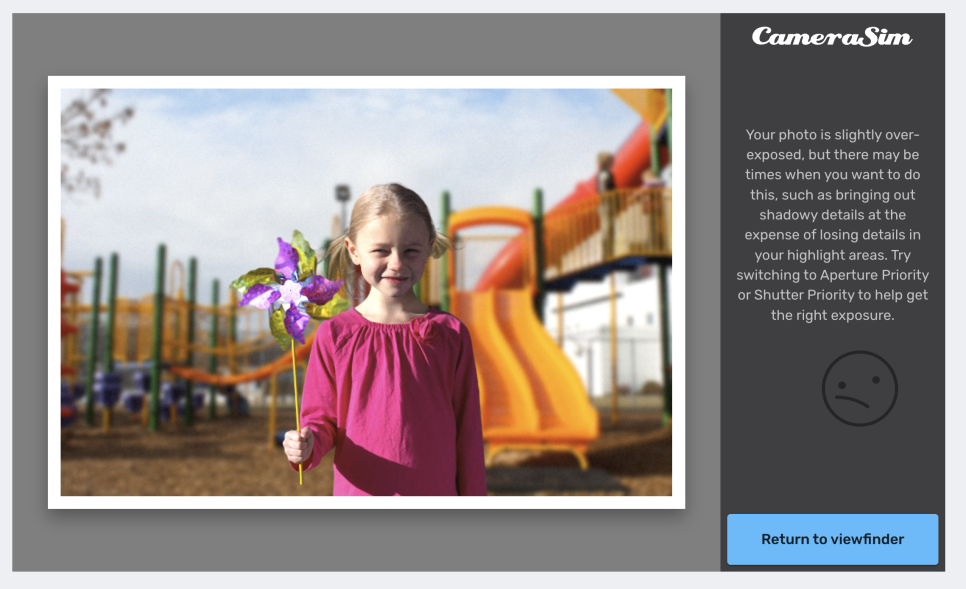사진 결과물에 대한 노출이나 아쉬운 점, 장점등을 영어로 설명해주고 직관적으로 표정 아이콘을 통해 잘찍은 사진인지 아닌지 보여주죠.
